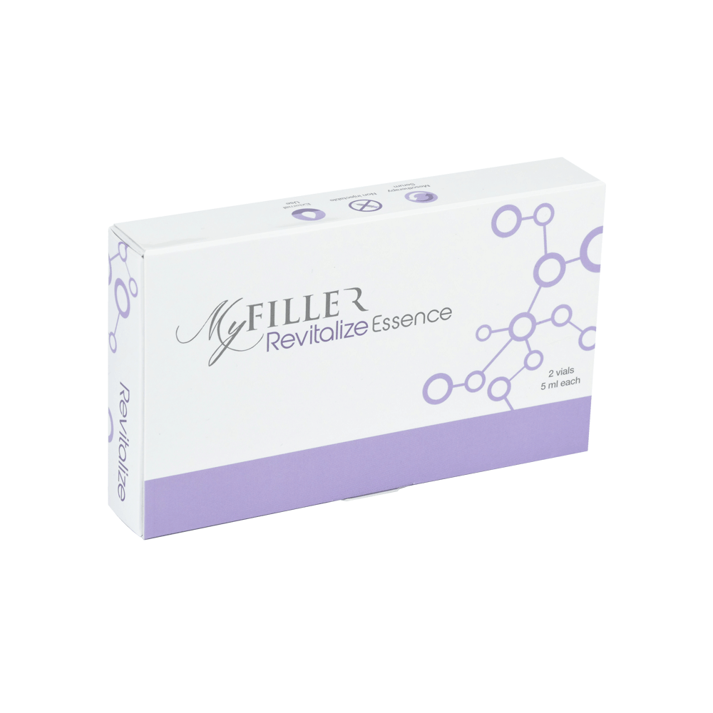 Revitalize Essence je revoluční kosmetický přípravek, který nabízí okamžité a dlouhotrvající výsledky. Tento produkt představuje budoucnost mezoterapie, protože obsahuje optimalizovaný potenciál pro hydrataci tkání a navíc i cross-link technologii pro dlouhodobější výsledky. Revitalize Essence obsahuje kombinaci vysoko- a nízko- hustotních molekul, které jsou perfektně vyvážené pro optimální hydrataci a silnou viskozitu. Tato kombinace dělá z tohoto produktu „hybrid“, který nabízí klientům rejuvenační vlastnosti vysoce kvalitního mezoterapeutického séra a zároveň fyzicky vyhlazuje vrásky a nedokonalosti pokožky stejným způsobem jako dermální fillery pracují v tkáních.