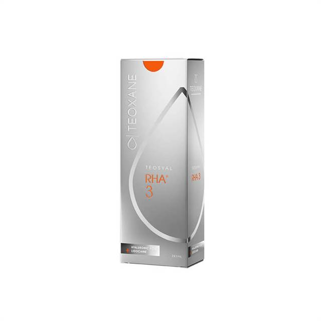 Teosyal® RHA 3 je produkt pro výplně vrásek na bázi kyseliny hyaluronové určené k podpoře pokožky při každém pohybu, při zachování vitality a měkkosti tváře. Teosyal® RHA 3 je navržen speciálně pro vyhlazení hlubších vrásek. Teosyal® RHA 3 lze také použít k zvětšení objemu rtů. Přípravek obsahuje Lidokain, což je silné anestetikum pro ještě pohodlnější aplikaci.